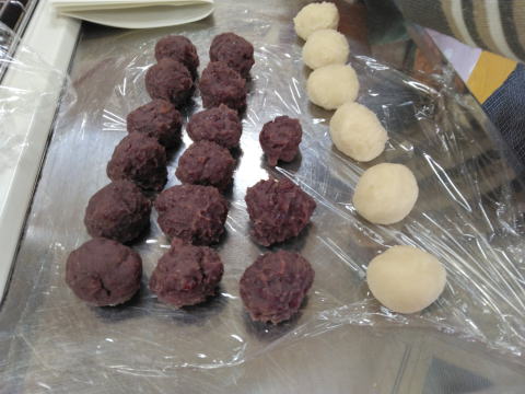 ④あんを1個25g位に丸めておき、包む |
