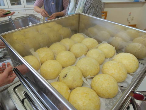 ⑤蒸器に並べて蒸す(霧吹きがあれば表面をしっとりぬらす) 中火で8~10分蒸して完成。 |