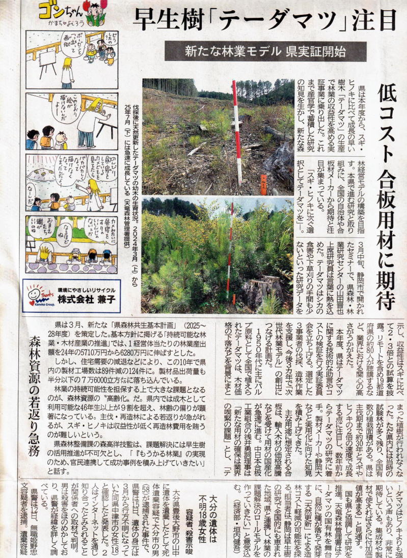 4月16日の静岡新聞では 静岡県が次世代林業モデルの創出に乗り出したと報じている。